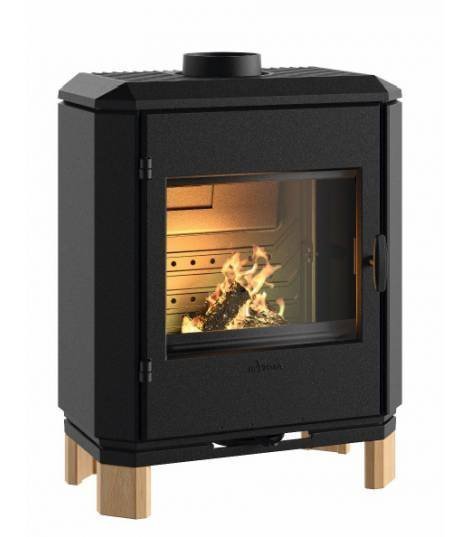 La famille des CAROLO s’aggrandit avec cette version dotée de pied en bois. Très mode, cette petite modification offre une silhouette plus légère et plus déco à ce petit poêle. Il offre 8 kW de chaleur, il est labellisé 7* et raccordable à un circuit d’air frais.